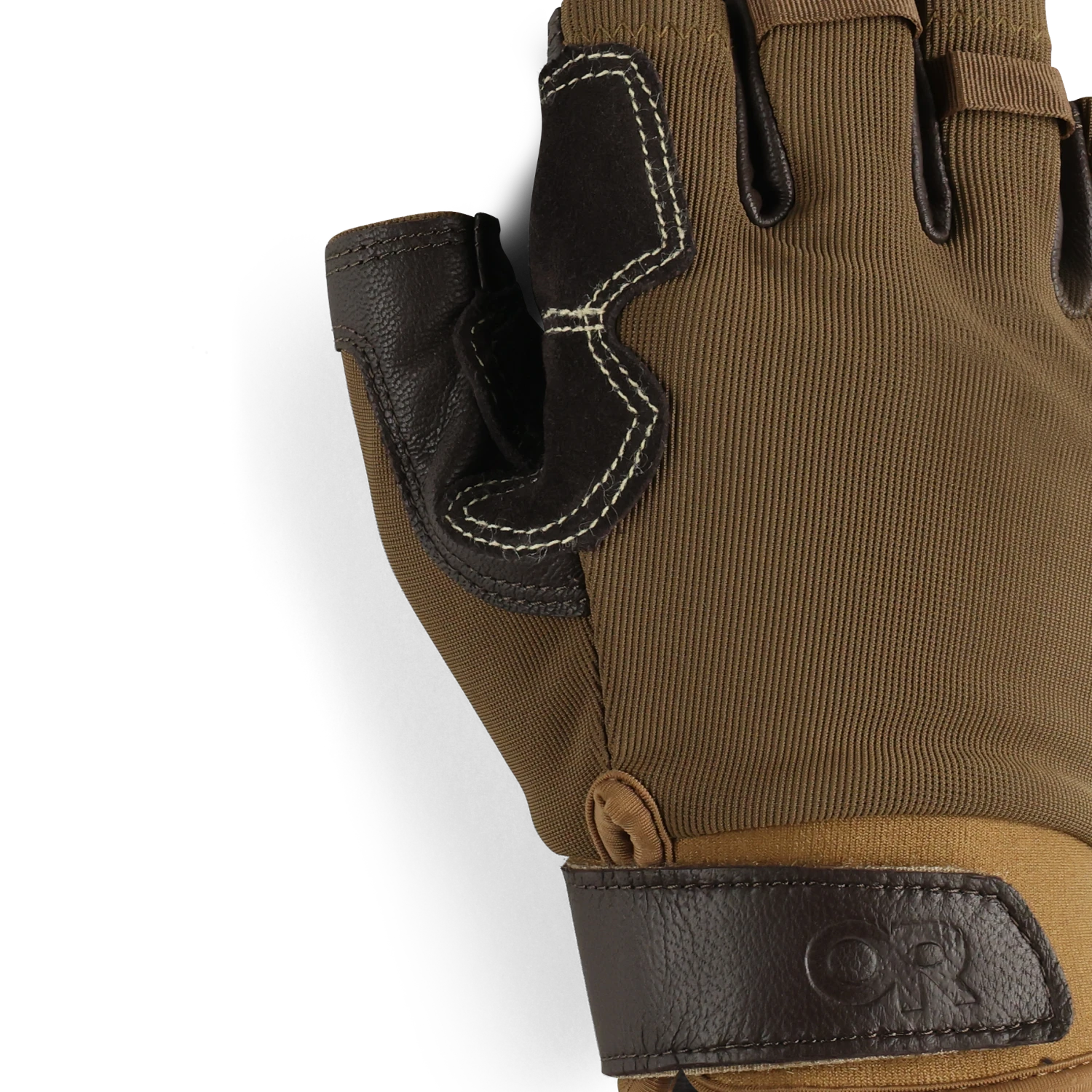 This glove features a fingerless design that allows a firm grip on gear while still providing protection from the elements.The palms are made of goat leather with cow-split suede overlays for durability, and the neoprene cuff offers all-day comfort. The gusseted wrist entry with hook/loop closure ensures a snug and comfortable fit. Kevlar stitching on the palm is particularly well suited for preventing rope burn while belaying and rappelling and adds to the gloves’ durability.